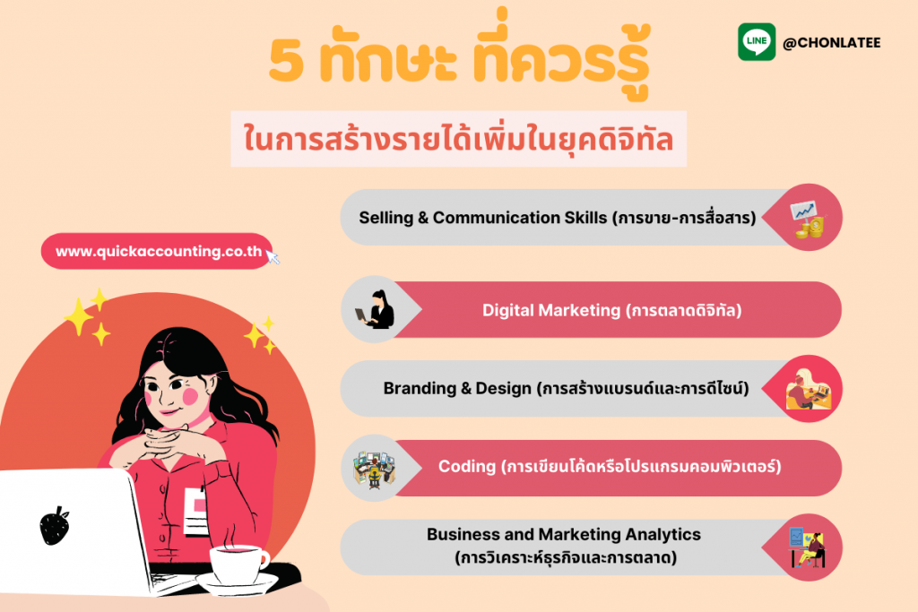 “ในตอนนี้ต้องยกให้ว่าเป็นยุคของคำว่า “ดิจิทัล” อย่างแท้จริง  นอกจากเทรนด์ที่เปลี่ยนไป ยังรวมถึงการทำงานของธุรกิจสมัยนี้ด้วย วันนี้ทาง ‘ควิกแอคเคาท์ติ้ง’ จึงยก 5 ทักษะ ที่ควรรู้ในการสร้างรายได้เพิ่มในยุคดิจิทัล”